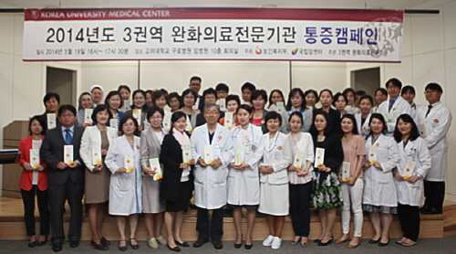 지난 19일 고려대 구로병원, 서울성모병원 등 서울과 경기 서남권역 완화의료전문기관 의료진과 자원봉사자들은 고려대 구로병원 암병원에서 모여 통증관리 위한 치료방안을 모색하고, 교육하는 시간을 가졌다.