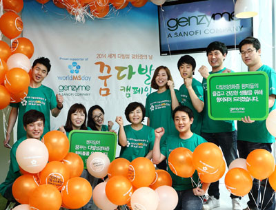 이날 젠자임과 사노피 그룹 소속 한국 계열사의 임직원들은 다발성경화증을 상징하는 오렌지색 풍선에 환우들을 위한 자신의 소원을 적어 꿈다발을 만들었다. 이렇게 수집된 메시지들은 전세계 환자들이 공유하고 공감할 수 있도록 ‘World MS Day 2014’ 캠페인 페이지에 게시될 예정이다.