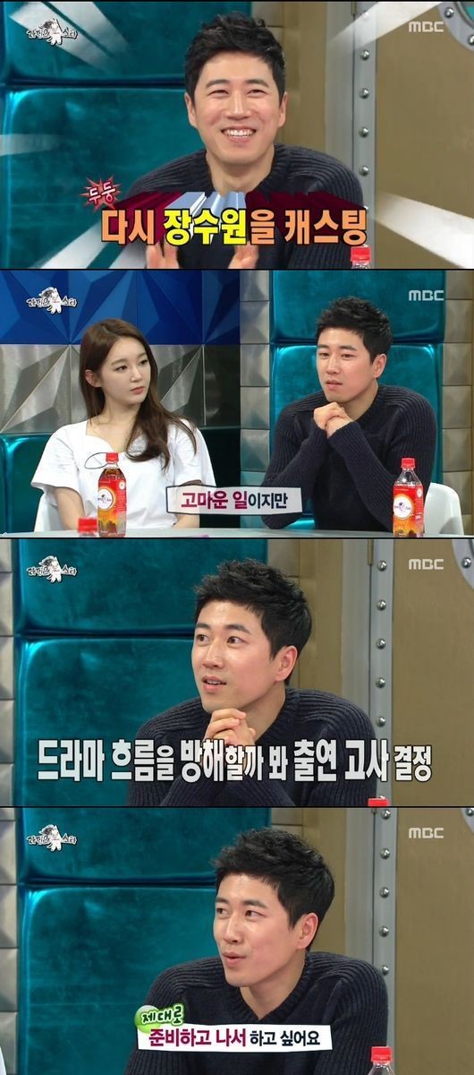장수원은 이날 방송에서 “카메오로 나올 수 있냐고 제작진에서 얘기했지만 드라마의 흐름을 방해할까봐 출연을 고사했다”고 말했다. 이어 그는 “다시 준비하고 싶다. 지금 하면 그 때보다 잘할 자신은 없다”고 말해 웃음을 자아냈다.