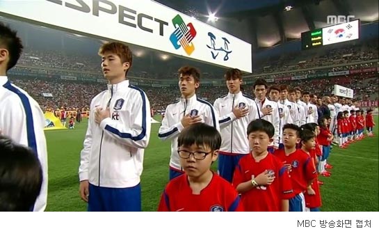 기성용의 기이한 행동은 TV 중계화면에 그대로 포착됐다. 대한민국 국기법 제3조 (국기에 대한 경례방법)에는 ‘제복을 입지 아니한 국민은 국기를 향하여 오른손을 펴서 왼쪽 가슴에 대고 국기를 주목한다’고 명시돼 있다. 우리나라를 대표하는 스포츠 선수들은 국내외 경기에 나설 때마다 오른손을 왼쪽 가슴에 올리며 국기에 대한 경례를 한다.