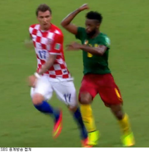 전반 40분 카메룬의 알렉스 송은 크로아티아 만주키치와 어깨싸움을 하다 밀리자 팔꿈치로 만주키치를 가격했다. 이를 지켜 본 주심은 곧바로 알렉스 송에게 퇴장을 선언했다.