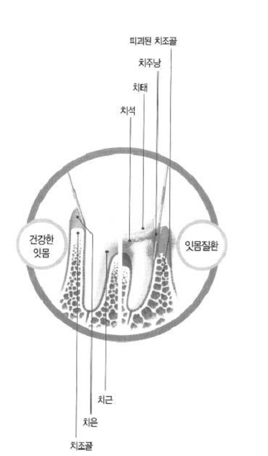 잇몸질환은 치아를 둘러싸고 있는 주위조직인 잇몸과 턱뼈에 염증이 생기는 병이다.