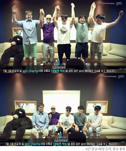 그룹 god(이하 지오디)의 15주년 프로젝트 앨범 선공개 음원 ‘하늘색 약속’이 음원차트에서 돌풍을 일으키고 있다.