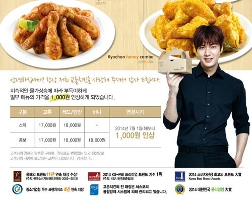 치킨 프랜차이즈 브랜드들의 한 마리 가격대가 1만 5000원에서 1만 9000원 사이 가격대를 형성하고 있는 가운데 교촌치킨이 치킨 가격을 인상했다. 교촌치킨은 지난 2일 “가맹점 운영비용 상승으로 부담이 가중돼 치킨 가격을 인상했다”며 제품 평균 가격을 5~6% 인상했다. 교촌 간장 스틱과 콤보가 1만 6000원에서 1만 7000원으로, 레드스틱·레드콤보·허니콤보는 1만 7000원에서 1만 8000원으로 올랐다.
