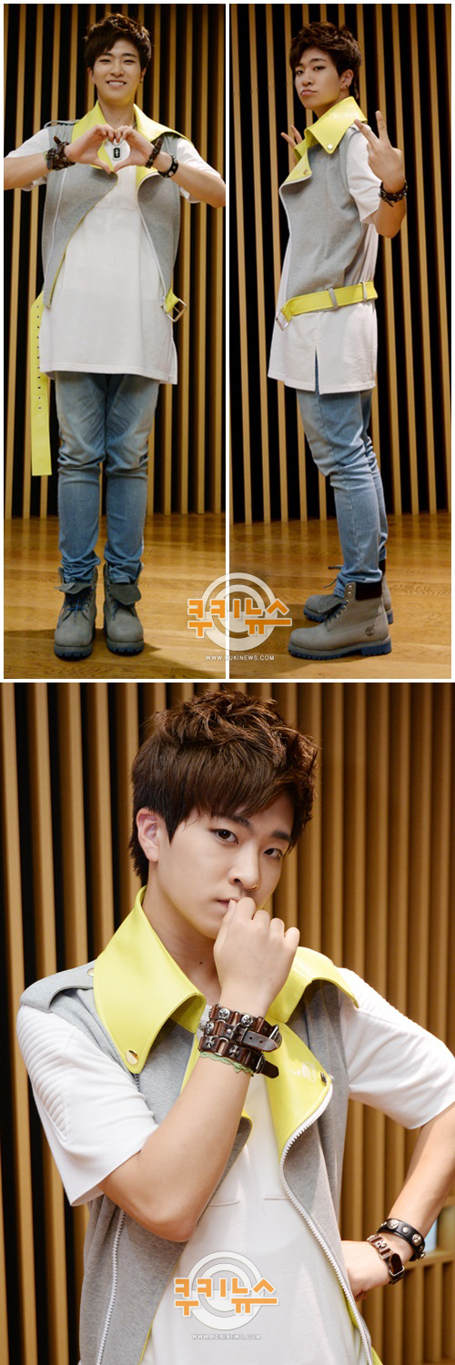 아이돌 그룹 갓세븐의 영재가 쿠키뉴스와의 인터뷰 전 포즈를 취하고 있다.