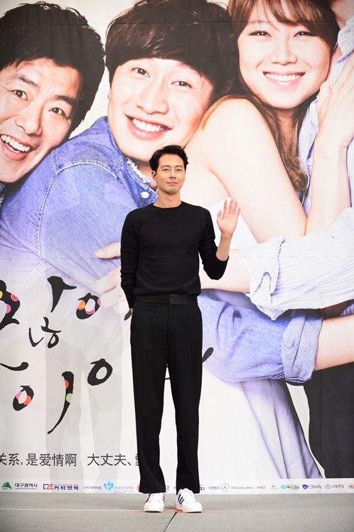 15일 서울 강남구 영동대로 임피리얼팰리스호텔에서 열린 ‘괜찮아, 사랑이야’ 제작발표회에서 조인성은 “영화 ‘쌍화점’ 이후로 오랜만에 벗었다”고 말해 시선을 집중시켰다. 그는 “그 모습이 어떻게 받아들여질지는 걱정스럽지만 다소 무거울 수 있는 드라마의 주제를 가볍게 환기시키고 싶었다”며 “그래서 연기도 가볍게 하고 있는데, 우선 옷부터 벗어봤다”고 설명했다.
