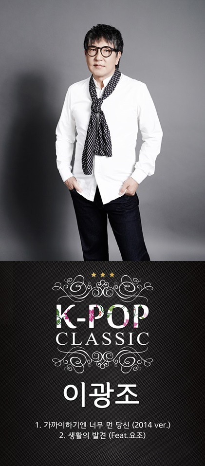 이광조는 23일 홍대 여신 요조와 협업한 ‘생활의 발견’ 과 ‘가까이 하기엔 너무 먼 당신’을 리메이크한 앨범 ‘K팝 클래식’을 23일 정오 발매한다. 이광조 측은 “명품 클래식 음악처럼 시대와 문화를 초월하는 불변의 감동이 K팝 음악에서도 가능할까 하는 생각에서 시작했다”며 “7080 아날로그 시대의 명곡을 재해석했으며 요조와의 협업을 통해 신구세대의 조화를 꾀했다”고 앨범의 취지를 전했다.