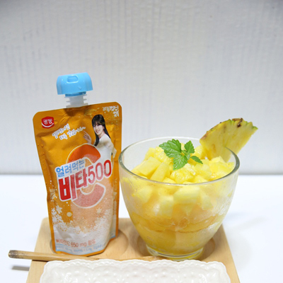 비타민 디저트 중 단연 화제는 일명 ‘빙타500’이라 불리는 비타민 빙수다. 광동제약이 올 여름 출시한 ‘얼려먹는 비타500’을 활용한 이 레시피는 빙수 재료 없이, 얼음을 갈지 않고 간편하게 즐길 수 있어 누리꾼들에게 큰 관심을 끌고 있다.