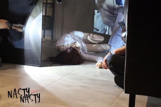 네스티네스티 (NASTY NASTY) 경리가 뮤직비디오 촬영현장에서 드러누운 사진이 공개돼 시선을 모았다.