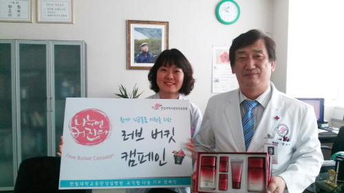 ‘러브 버킷 캠페인’의 첫 번째 주인공은 장호근 병원장이다. 장 병원장은 남성용 화장품 세트를 기부했으며