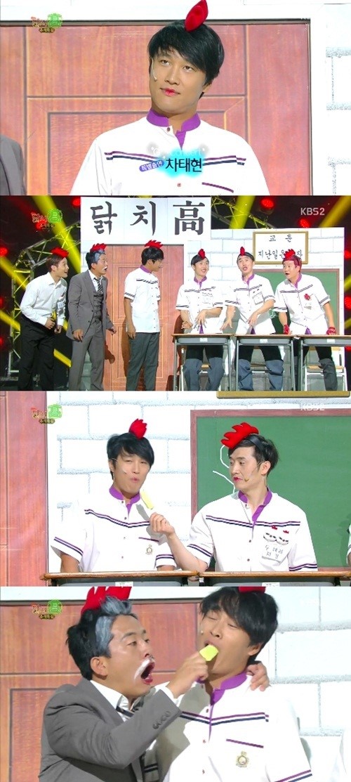 차태현이 개그콘서트 코너 ‘닭치고’의 전학생으로 특별출연했다.