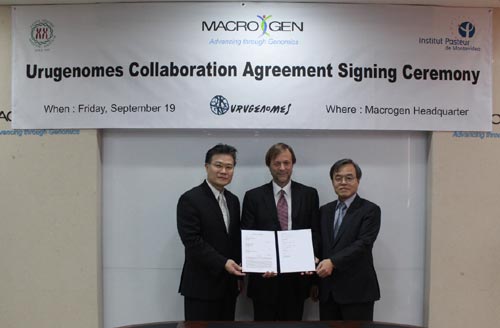 생명공학기업 마크로젠(대표이사 김형태)은 서울대학교 의과대학 유전체의학연구소(Genomic Medicine Institute, 소장 서정선 교수)와 우루과이 파스퇴르연구소(Institute Pasteur de Montevideo, 소장 루이스 바베이토)와 공동으로 우루과이 게놈 프로젝트 진행한다고 19일 밝혔다.