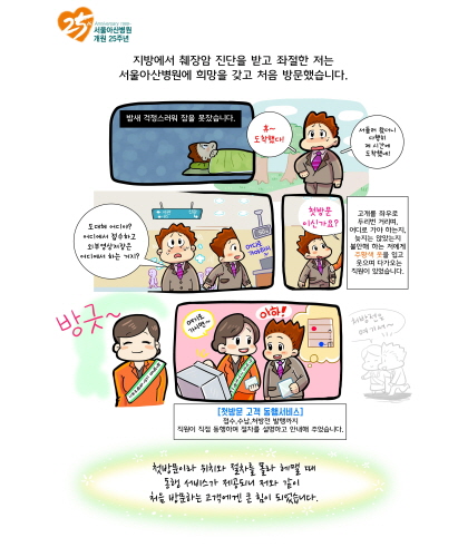 ‘첫방문 고객 동행 서비스’ 등 고객경험 중심의 서비스를 만화로 표현함으로써, 환자들은 의료진의 노력을 알게 되고 의료진들은 환자들의 불편사항을 공감할 수 있다.