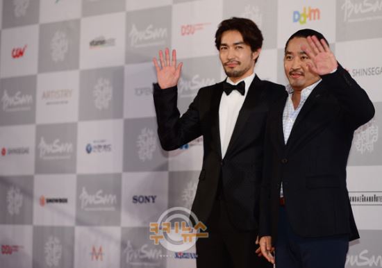 배우 오타니 료헤이, 김한민 감독(왼쪽부터)이 2일 오후 부산 해운대구 우동 영화의 전당에서 열린 '제19회 부산국제영화제'(BIFF) 개막식에 참석해 레드카펫을 걷고 있다.