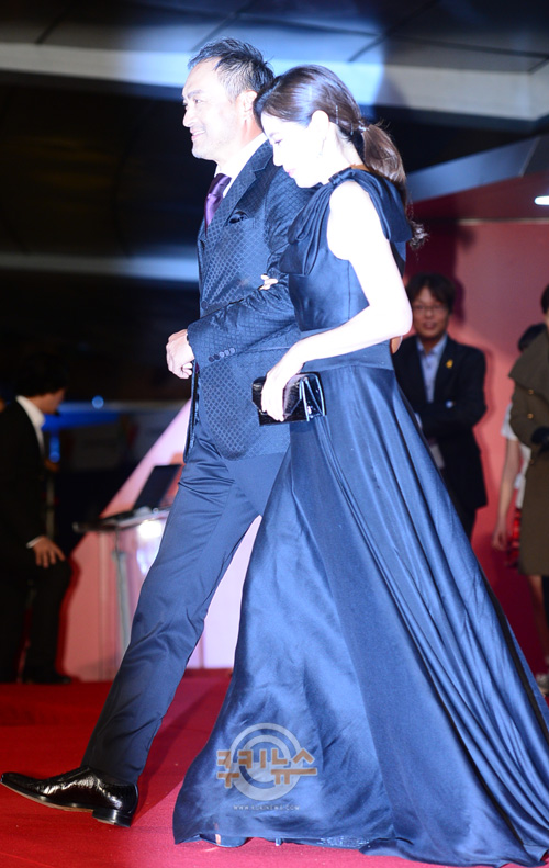 배우 와타나베 켄, 문소리(왼쪽부터)가 2일 오후 부산 해운대구 우동 영화의 전당에서 열린 '제19회 부산국제영화제'(BIFF) 개막식에 참석해 포토월에서 포즈를 취했다.