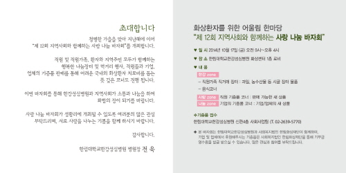 한림대학교한강성심병원과 사회복지법인 한림화상재단은 오는 17일 오전 9시부터 오후 4시까지 한림대학교한강성심병원 화상센터 1층에서 화상환자 치료비 지원을 위한 ‘제12회 지역사회와 함께하는 사랑 나눔 바자회’를 개최한다.