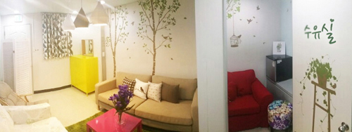 또한, 여직원들이 직접 인테리어와 비품 구매에 참여하여 칸막이와 안락한 소파, 테이블, 냉장고 등을 배치해 휴식을 취하거나 간식을 먹으면서 스트레스를 풀 수 있는 따뜻하고 아늑한 공간으로 꾸며졌다.