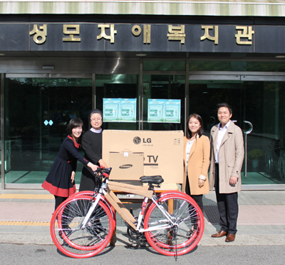 복지관 가족들의 교육 및 계발 활동을 위한 LED TV와 노트북, 재활 운동에 필요한 자전거 8대 등 240만원 상당의 물품을 구입하여 전달했다.