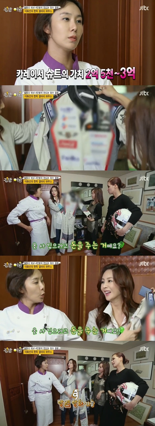 이화선은 자신의 집에 온 세 명의 출연자들에게 옷장에 있던 카레이서 슈트와 경비행기 조종 슈트 등을 공개했다. 박영선이 “이런 옷은 모두 협찬 받는 것이냐 아니면 모두 구매하는 것이냐?”하고 묻자 이화선은 “보통 이런 옷 한 벌에는 저를 후원하고 저희 팀을 후원하는 공식 스폰서들의 로고가 박혀있다”며 “옷 한 벌의 가치는 2억5000만원에서 3억원 정도 된다”고 밝혔다. 이어 “사실 옷값은100만원 정도 한다. 옷이 조금 비싼 이유는 방염·방화 기능이 있어서 그렇다”고 말했다.