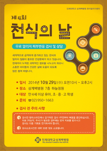 인제대학교 상계백병원 천식·알러지센터에서는 오는 29일(수) 오전 10시부터 오후 2시까지 병원 내 7층 하늘정원에서 '2014 천식의 날' 행사를 개최한다.