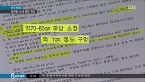 故 신해철이 응급수술을 받을 당시 고인의 소장에서 1㎝ 크기의 천공이 발견됐다는 병원 기록이 알려졌다. 소장에서 발견된 천공 주변에서는 복수와 이물질이 흘러나와 심각한 염증이 발생돼 있었다고 기록돼 있다. 천공이 오랜 시간동안 방치된 것. 결국 신해철이 지난 17일 장협착 수술을 받을 당시 과실로 천공이 발생했거나 이미 존재하던 천공을 S병원에서 발견하지 못했을 가능성이 새롭게 제기됐지만 S병원은 이를 부인했다.