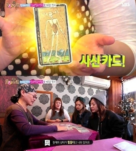 9일 방송된 SBS ‘일요일이 좋다-룸메이트 시즌2’에서는 써니와 개그우먼 이국주, 애프터스쿨 나나가 삼청동 나들이를 갔다. 이날 타로점을 보러 간 자리에서 써니는 사신 카드를 집어들었다. 죽음을 뜻하는 사신 카드는 점에서 좋지 않은 결과를 의미한다. 이국주는 “타로를 잘 모르는 내가 봐도 어떤 카드일지 알겠다”고 염려를 드러냈고, 타로점을 봐주던 타로술사는 써니에게 “지금 몸이 매우 힘든 상태”라고 조언했다. 이어 “일로 돈은 벌지만 현재 상태가 힘들다”며 “옆에서 다정한 친구들의 위로가 필요하다”고 말했다.