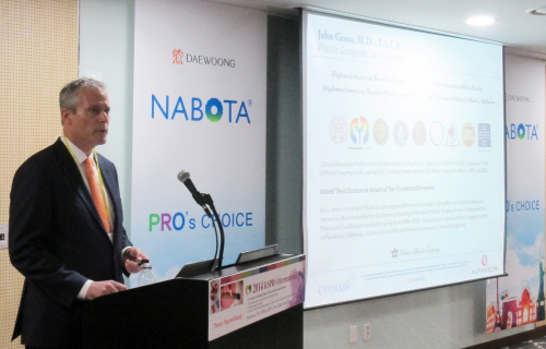 ‘대웅제약, 나보타를 선택한 이유’란 제목으로 발표한 존 그로스 박사는 “나보타는 최신정제공정을 바탕으로 순도가 우수한 신경독소로 이루어진 보툴리눔톡신으로 지속효과가 길고 효과 예측이 가능해 의사 및 환자들에게 많은 도움을 줄 수 있는 제품”이라며 ”미국에서 수행중인 나보타 임상도 성공적으로 진행되고 있다”고 말했다.