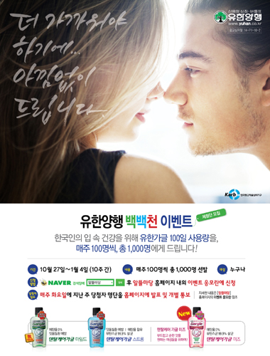 이번 이벤트는 한국인의 입 속 건강 지키기 캠페인의 일환으로 마련되었으며, 선발된 체험단 1000명 에게는 충치 및 잇몸질환 예방에 효과적인 유한 덴탈케어 가글 100일 사용분이 무료로 제공된다.