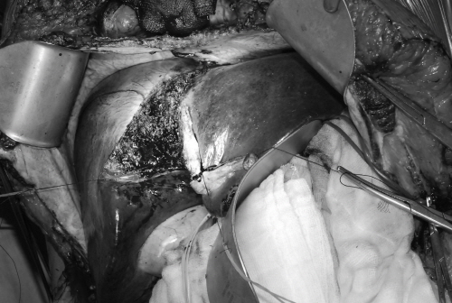 절단면을 당기는 용도 외에 간의 뒷부분에 있는 종양을 앞 쪽으로 끌어당기는 데에도 고무줄이 이용된다. 종양이 간의 뒷부분에 있어 앞 쪽에서는 보이지 않을 때 종양이 있는 부위를 앞쪽으로 끌어 당겨야 하는데 이 때도 고무줄을 묶어 당기는 것이다. 마찬가지로 집도의의 손을 자유롭게 하고 시야를 확보하는데 용이하다.