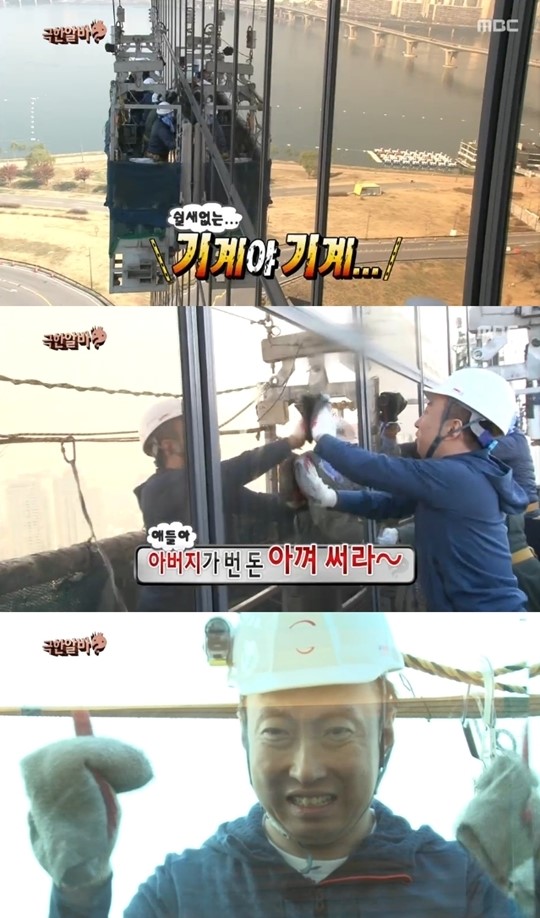 박명수는 “아르바이트가 4시간 만에 끝난다”는 제작진의 말에 250m 높이의 63층 빌딩 창문 청소에 나섰다. 그는 청소 도중 “너무 힘드니까 무서운 것도 없고 고소공포증도 없다”며 딸 민서에게 “민서야, 돈 아껴 써라. 돈 아껴써”라고 말해 웃음을 자아냈다.
