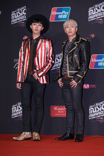 그룹 빅뱅의 지드래곤과 태양(왼쪽부터)이 3일(현지시간) 홍콩 아시아월드 엑스포 아레나에서 열린 2014 MAMA(2014 Mnet Asian Music Awards) 시상식에 참석했다.