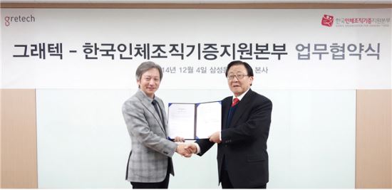 한국인체조직기증지원본부와 그래텍이 4일 삼성동 그래텍 본사에서 업무협약을 체결했다.