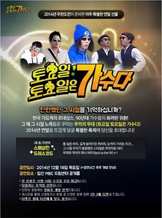 10일 방송계에 따르면 지누션은 최근 MBC ‘무한도전-토토가’에 출연을 확정하고 무대를 준비 중이라고. ‘토토가’는 무한도전 멤버들이 직접 기획한 특별편으로, 한국 대중음악의 전성기인 1990년대의 유명 가수들을 한데 모아 그 시절을 추억하는 내용이다. 가수 소찬휘, 김현정, 터보, 조성모, 쿨 등이 출연을 확정했다.