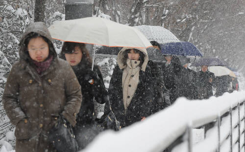 폭설 뒤 매서운 한파가 찾아온 탓에 길이 꽁꽁 얼어붙었습니다.