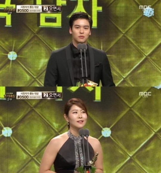 배우 이장우, 김지영이 연속극 부문 우수 연기상을 수상했다.