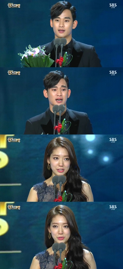 배우 김수현·박신혜가 중편드라마 최우수 연기상을 수상했다.
