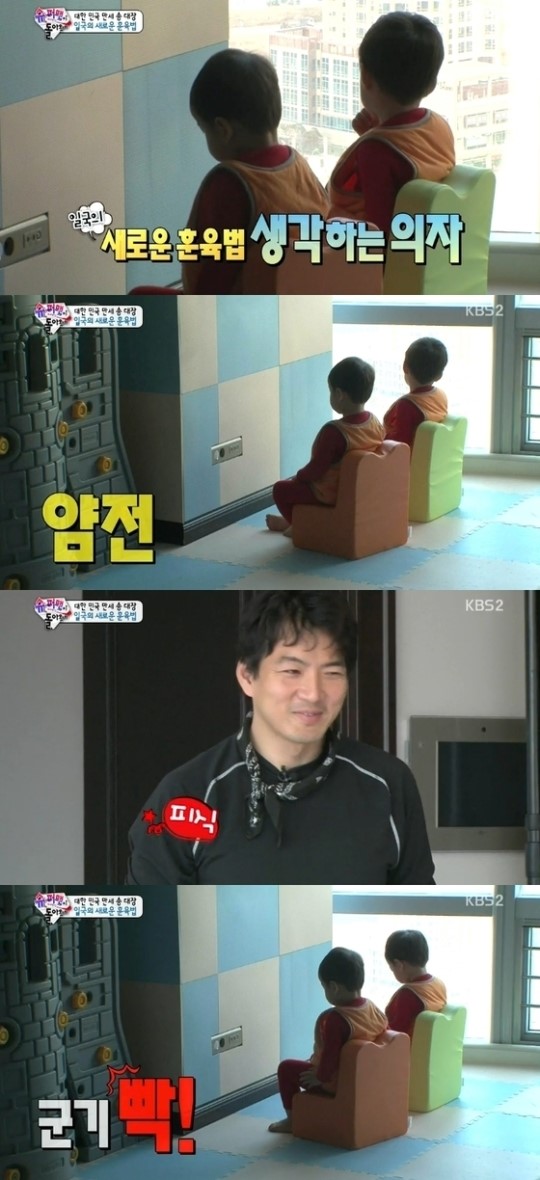 이에 송일국은 아이들에게 의자를 가지고 오라고 했다. 이어 의자를 가지고 온 삼둥이에게 “의자에 5분 동안 앉아 있으라”고 말했다.