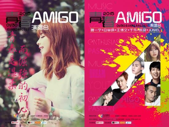 주니엘은 오는 30일 중국 북경 국가도서예술센터 콘서트홀에서 개최되는 ‘청춘AMIGO’ 공연에 참가한다. ‘청춘 AMIGO’는 중국의 연예기획사 띠엔통(北京電童文化藝術有限公司, 북경전동문화예술유한공사) 소속 가수들이 펼치는 공연이다. 우정을 주제로 펼쳐지는 이번 공연에서 주니엘은 중국의 인기 가수 천샤오(陳驍,진효)의 친구로 초청받아 공연의 유일한 여자 게스트로 한 무대에 설 예정이다.