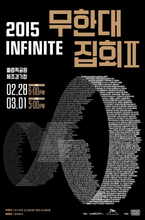 무한대집회 2는 예매사이트 인터파크를 통해 다음 달 4일 팬클럽 선예매가 진행되며 일반예매는 6일 가능하다. 다음 달 28일부터 3월 1일까지 양일간 서울 송파구 올림픽로 올림픽 체조경기장에서 펼쳐진다.