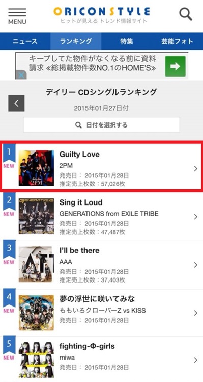 JYP엔터테인먼트 측은 “2PM이 2015년 새해 일본에서 발매한 첫 앨범이 오리콘 차트 1위를 비롯 타워레코드와 벨소리 음원사이트에서도 모두 1위를 차지하며 기분 좋은 출발을 했다”며 “팬 분들께 감사드린다”고 전했다.