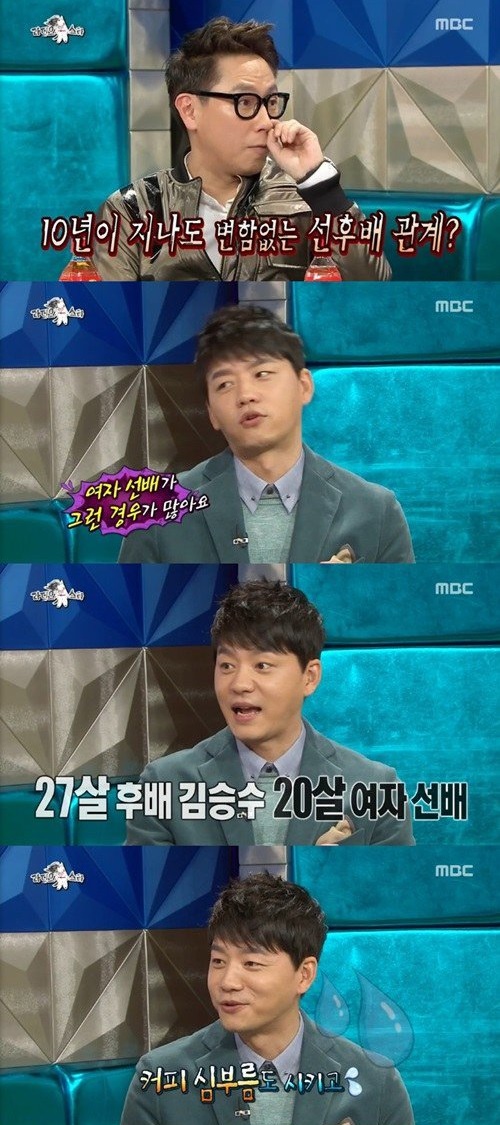 이어 “대부분 여자 선배들이 그런 경우가 많았다”며 “한 기수 위 선배였는데 내가 27살에 공채에 합격해 후배였고 그 여자 선배는 20살이었다. 커피 심부름을 시키는가 하면 다 끝났는데도 꼭 ‘승수 씨’라고 부르더라. 또 다른 사람들과 같이 있을 때 기수가 몇이냐고 일부러 물어보기도 했다”고 말했다.
