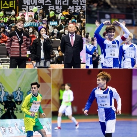 19일 오후 방송된 MBC 설특집 ‘2015 아이돌스타 육상·농구·풋살·양궁 선수권대회’(이하 아육대)에서는 남자 풋살 종목이 펼쳐졌다. 이날 샤이니 민호·엑소 시우민 등을 필두로 한 ‘FC 청담’과 신인 그룹들이 다수 속한 ‘막차스터 유나이티드’가 풋살 2차 준결승에서 맞붙었다.