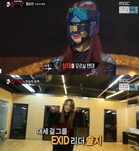 [쿠키뉴스=권남영 기자] MBC ‘복면가왕’ 최종 우승자 ‘자체검열 모자이크’가 걸그룹 EXID(이엑스아이디) 멤버 솔지임이 밝혀졌다.