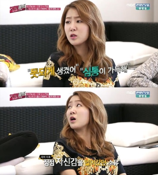소유는 ‘씨스타 멤버들은 언제부터 그렇게 예뻤나요?’라는 질문에 “스무 살까지는 내가 예쁘다고 생각했다. 근데 데뷔하고 나니 자신감을 잃었다. 자신감도 잃으니 내가 못생겨 보이더라”라고 밝혔다.