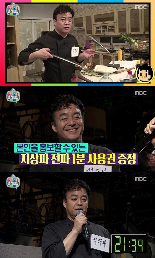 백종원은 우승 혜택으로 1분간 자기 홍보를 할 수 있는 전파사용권을 받자 “어떤 이야기를 해야 하느냐”며 당황하는 모습을 보였다.