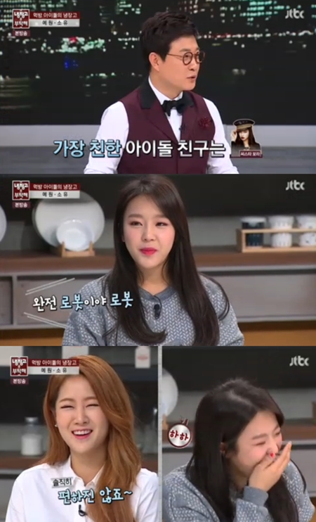 2일 방송된 JTBC 예능프로그램 ‘냉장고를 부탁해’에서는 걸그룹 씨스타의 소유와 쥬얼리 출신 예원이 출연해 이야기를 나눴다.