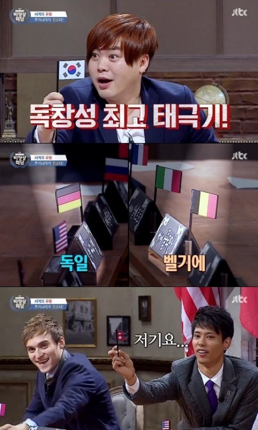 [쿠키뉴스=이은지 기자] 문희준이 비정상회담 패널 사이에서 한국의 태극기를 찬양해 환호를 받았다.