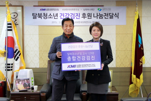 KMI는 5일 서울 종로구에 위치한 KMI 재단본부에서 ‘탈북청소년 건강검진 후원 나눔전달식’을 개최하고 이같은 내용을 밝혔다.