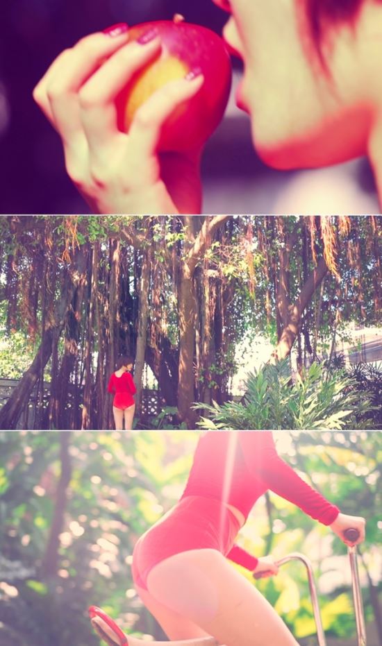 가인의 소속사 에이팝(APOP)엔터테인먼트는 10일 가인의 네 번째 미니앨범 ‘하와(Hawwah)’의 더블 타이틀곡 중 하나인 ‘애플(Apple)’의 프리뷰 이미지를 공개했다. 사진 속 가인은 붉은 바디슈트를 입고 초원을 누비고 있다. 빨간색 사과와 함께 건강한 몸매를 부각시켜 의미심장한 분위기를 풍겼다.