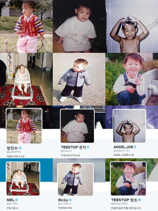 틴탑은 1일 0시 만우절을 기념해 멤버별 개인 SNS 프로필을 어린 시절의 사진으로 바꿔 팬들의 화제가 됐다. 사진 속 틴탑은 지금과 똑같은 얼굴로 눈길을 끌었다. 훈훈하게 잘 자란 틴탑의 해맑은 어린 시절은 팬들의 환호를 이끌어냈다.